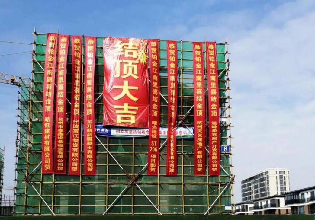 11月8日,公司承建的溫嶺市大溪鎮DX100106-1地塊項目順利封頂,全面進入二次結構施工階段。該工程位于溫嶺市大溪鎮曹岙村,由7幢17+1層的住宅用房組成。總用地面積24164平方米,其中地上建筑面積55745.49平方米,地下建筑面積22227.47平方米。工程在2021年9月26日打下第一根樁,2022年4月3...